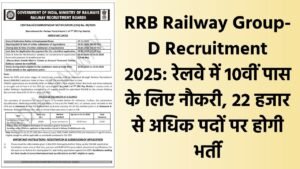 RRB Railway Group-D Recruitment 2025: रेलवे में 10वीं पास के लिए नौकरी, 22 हजार से अधिक पदों पर होगी भर्ती